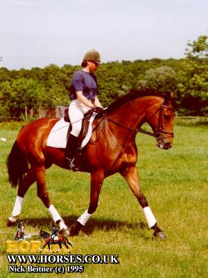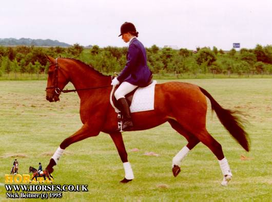 "Allie" is my 13 year old Holsteiner Mare. She's bay and 16.1 hands tall. She is currently doing a whole lot of things including 2nd and 3rd level dressage, a little bit of Jumping and Hunter! All will probablly never be able to get very far showing, due to the number of foals she has had. I'll probablly end up retiring her from the show ring sometime soon too, just so she doesn't that extra stress put on her! She is a great mare though, and I would love to see her foals do the showing for her! E-mail me if you would like a brood year!
