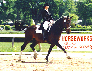 "Juby" is my 17 year old, bay, 17hh, Rheinlander Mare. She is a delight to have at the barn! Competing successfully at Grand Prix dressage, she a rare one! Despite brooding, she still has been able to compete at an international level! She would be a great dam for anyone's dressage program! If you would like to have a brood year off of her, please feel free to e-mail me. She has several foals on the ground that are doing wonderfully in the show ring! I have a Rheinlander Stallion if you would like to breed a purebred Rheinlander. Jubel means "jubilation or rejocing" in German.