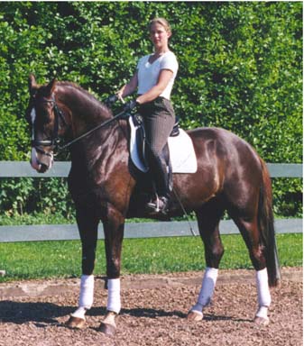 Teddy is my 18 year old 16.3hh, liver chestnut Rheinlander stallion! What a dream this horse is, and what a pain I went through trying to get him back! But I couldn't ask for a better man! He has won numerous awards. A 1st place at the 2001 Judges Choice Awards in the Other Breeds Category and TWO 1st places at the 2002 New Years Voting Awards in Dressage and Other Breeds! Way to go! Teddy is going great at Grand Prix dressage as well. He's up for stud at the fee of $1,900. E-mail me if you're interested in breeding to one of the highest titled Rheinlander's in the club! I also have a couple Rheinlander mares if you are interested in breeding a purebred Rheinlander. Teddy's Foals: Next Show: Current Points: Associations: